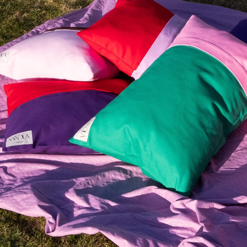 Unsere modularen Kissenbezüge machen es leicht, Farbkombinationen immer wieder neu zusammenzustellen: von mutigen Pink-Maigrün Kontrasten bis zu harmonischen Rosa- und Rottönen. Ob lässig auf der Picknickdecke, auf dem Sofa oder als frischer Farbakzent im Wohnzimmer – mit unseren modularen Kissen kannst du deine Kissenkombination immer wieder neu gestalten.